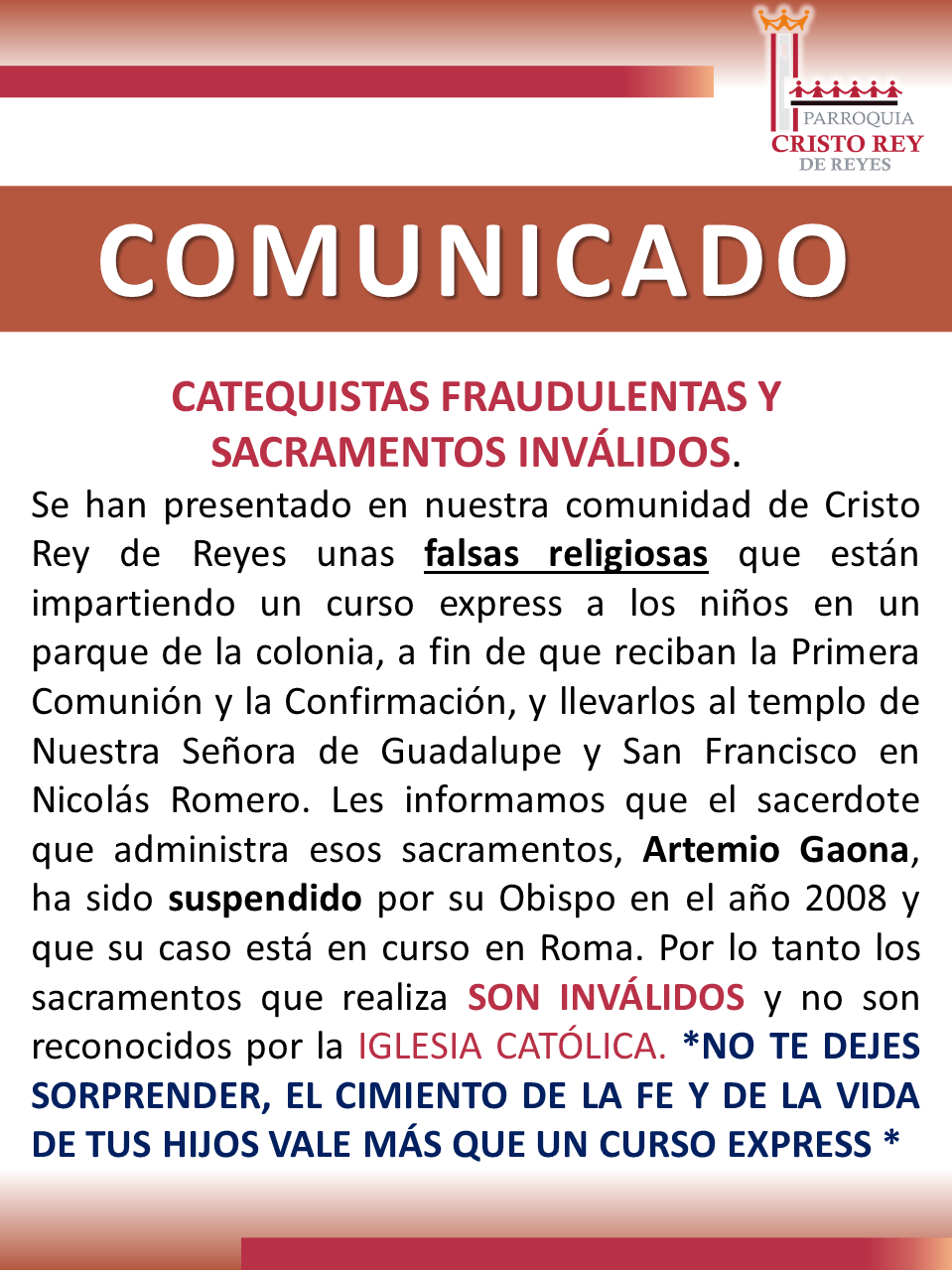 COMUNICADO DE NUESTRO ARZOBISPO DE TLALNEPANTLA