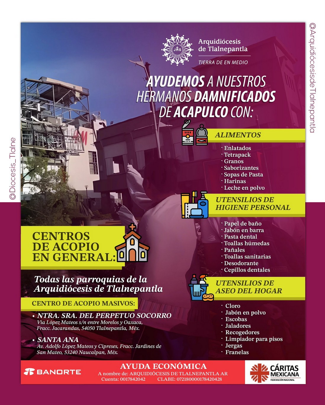 La Arquidiócesis de Tlalnepantla se solidariza con los damnificados de Acapulco