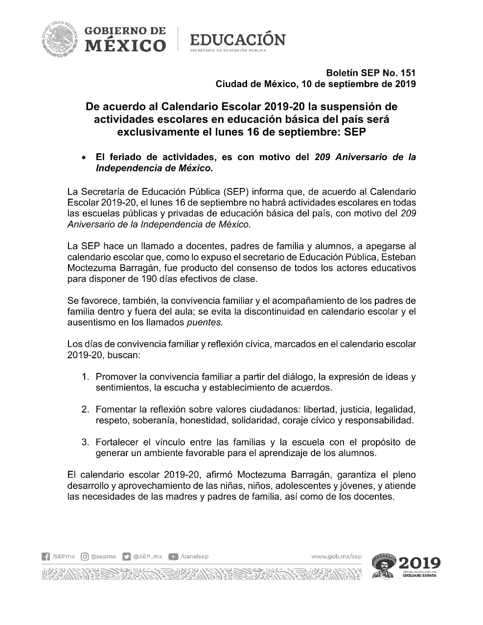 CONVIVENCIA FAMILIAR Y REFLEXIÓN CÍVICA• DÍA DE LA INDEPENDENCIA •16 DE SEPTIEMBRE