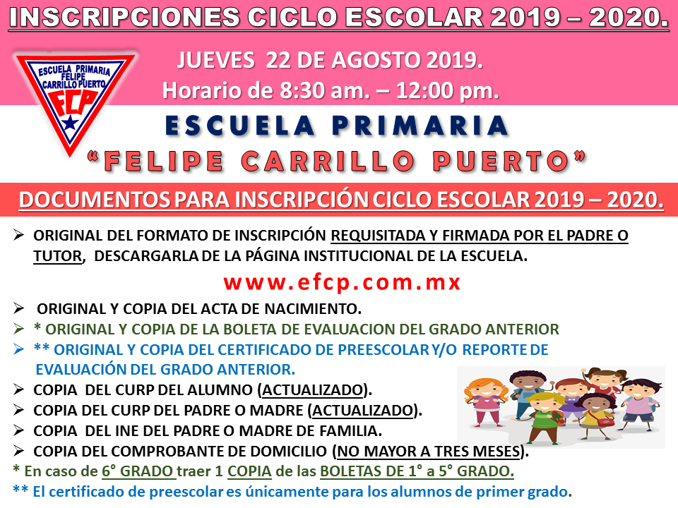 >> LLEVAR EL FORMATO IMPRESO DE INSCRIPCION A LA ESCUELA ADJUNTANDO